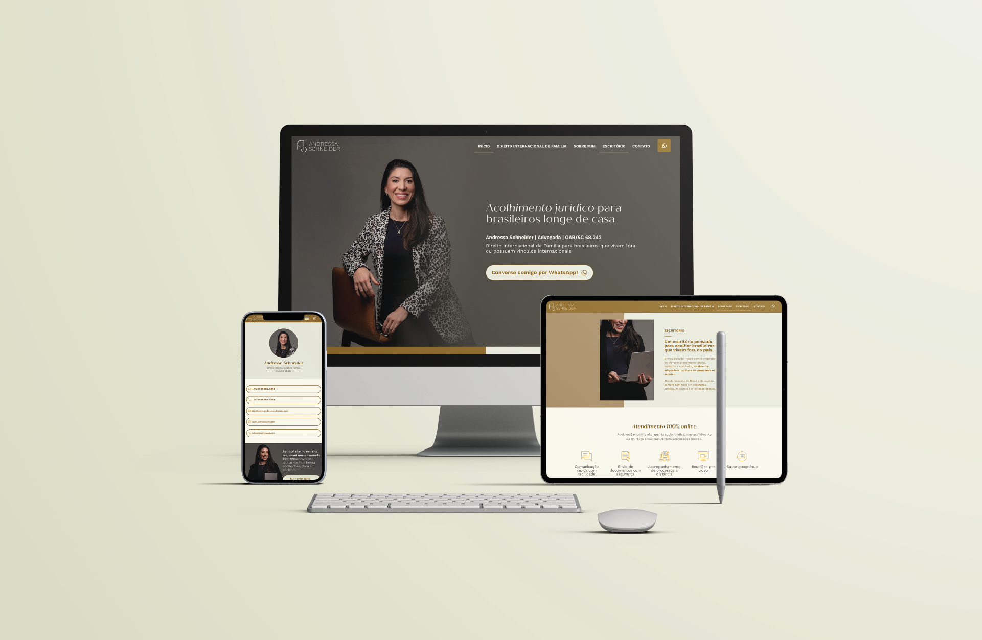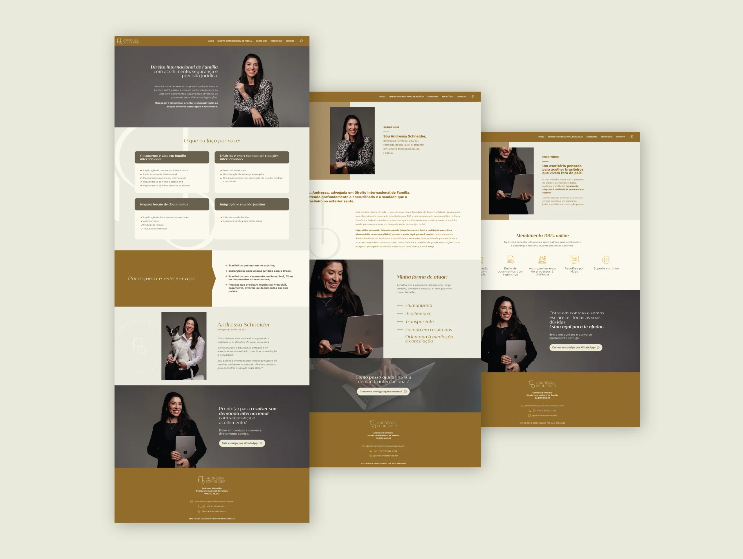 O projeto posiciona Andressa Schneider como referência em Direito Internacional de Família, através de um conteúdo estratégico e de um design minimalista e elegante.