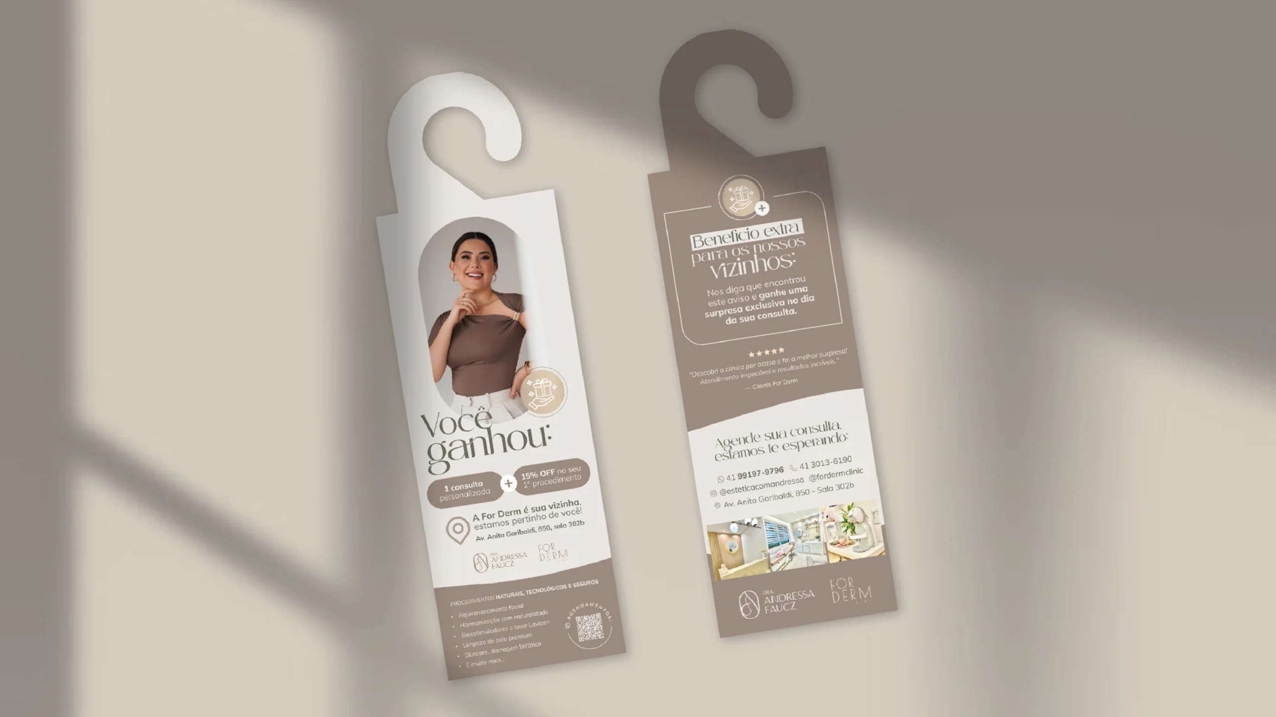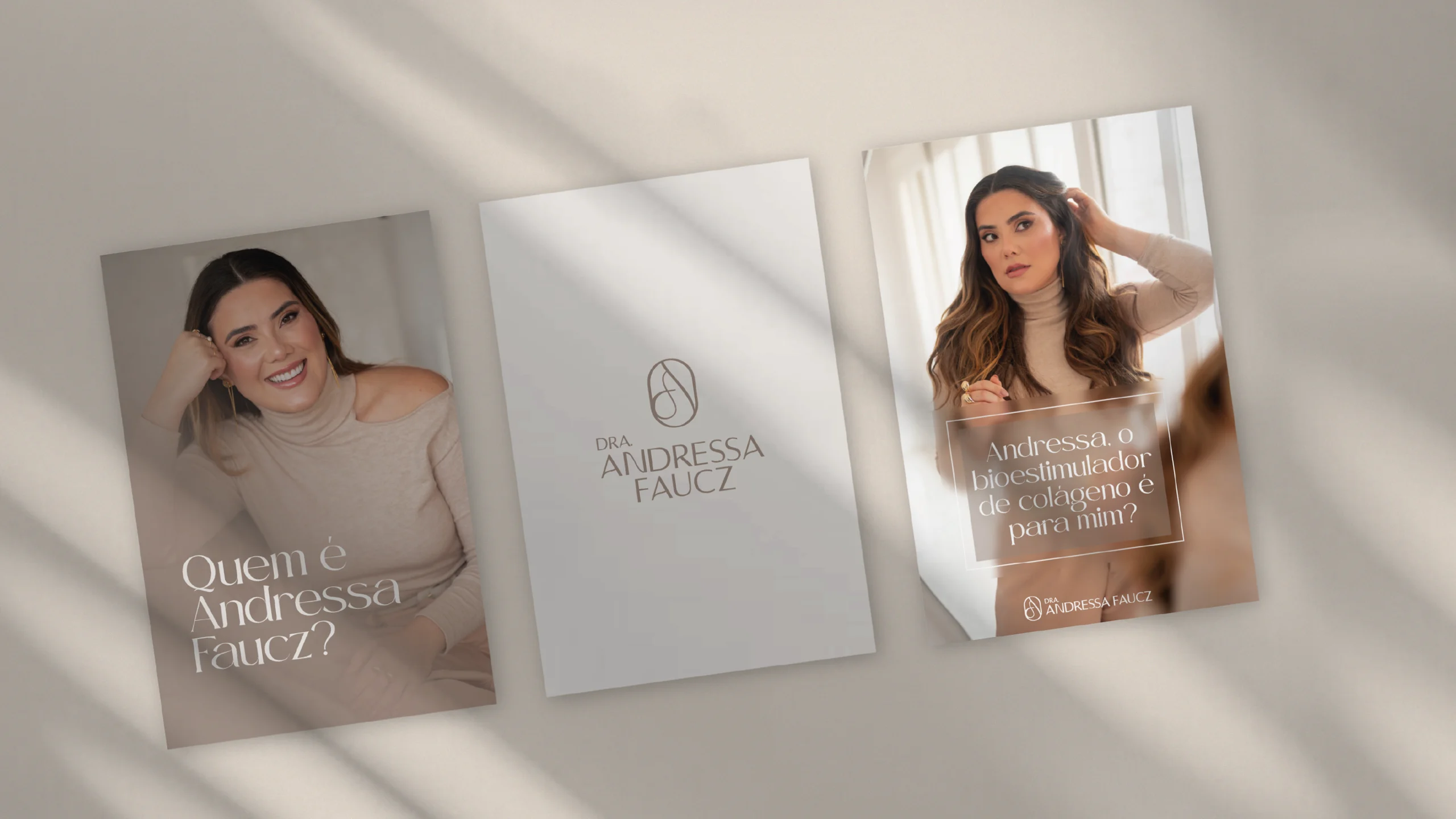 A criação dos materiais gráficos para marketing foram cuidadosamente elaborados para atrair o público de alto padrão, com elementos minimalistas e sofisticados que traduzem de forma clara toda a experiência premium que a Dra. Andressa proporciona em seus atendimentos.