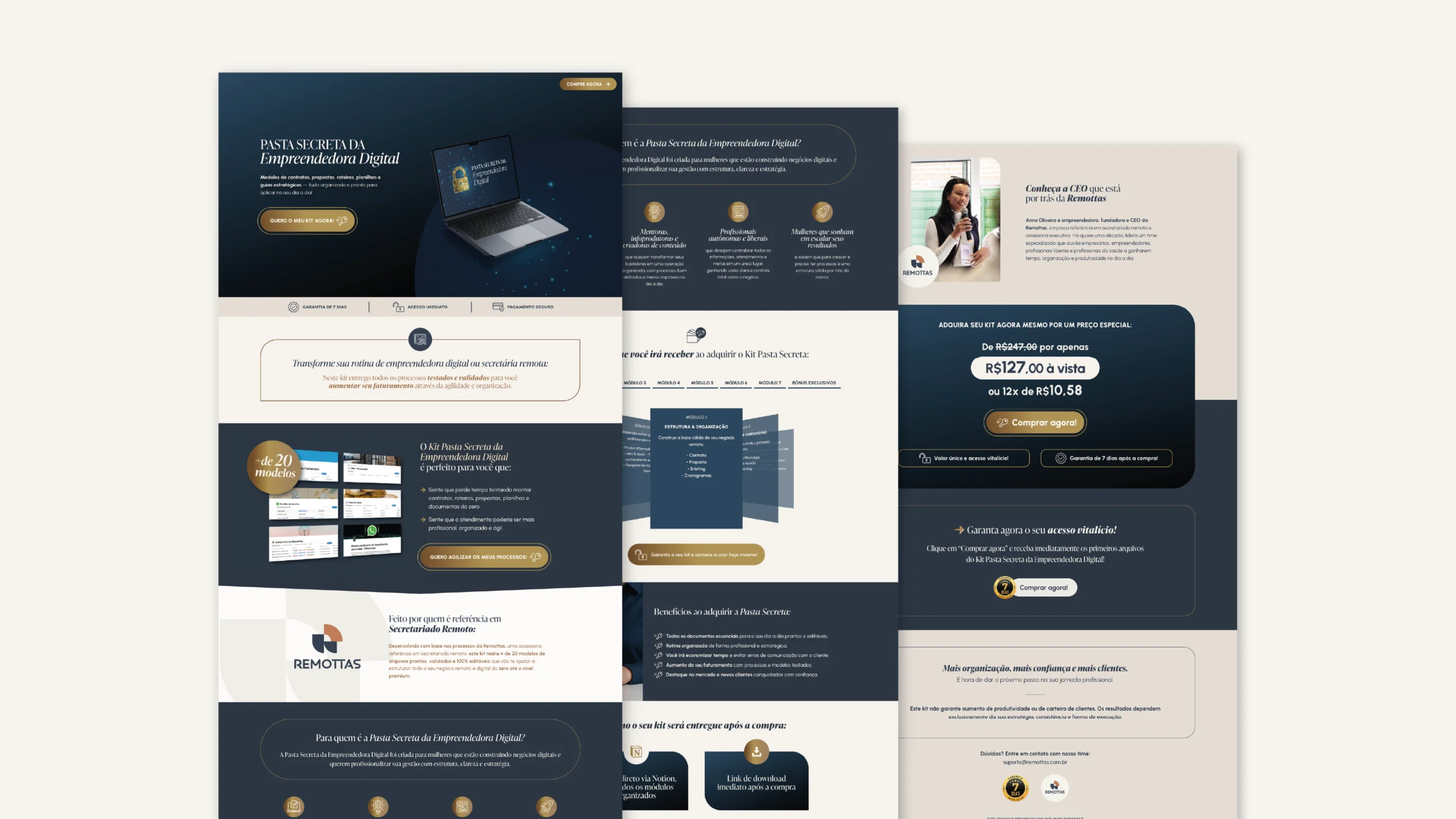 Criação completa de landing page de alta conversão: conteúdo, estratégia, design e desenvolvimento.