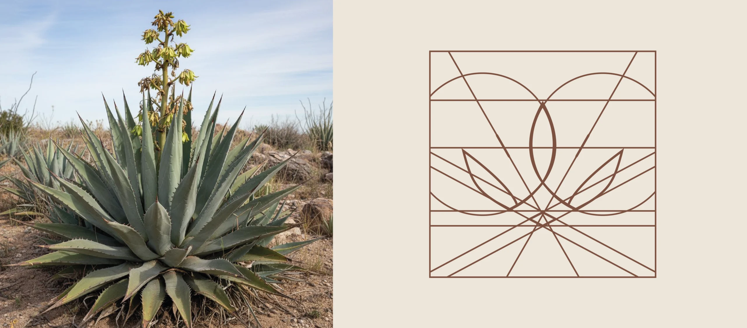 Base em losango que remete de forma minimalista à característica marcante do agave.